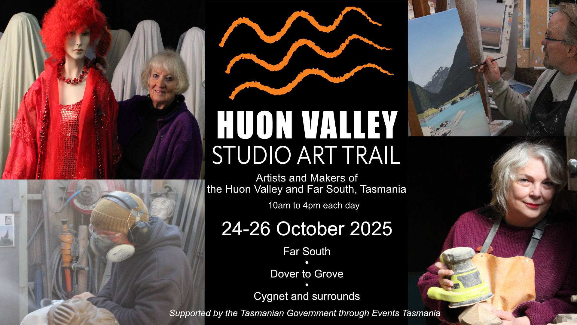 Huon Valley Studio Art Trail is supported by the Tasmanian Government through Events Tasmania. Discover Tasmania and find us on Discover Tasmania